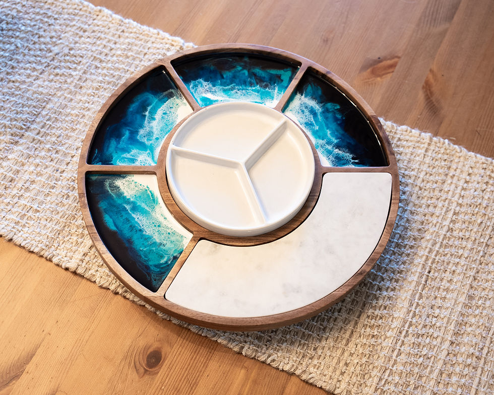 For the Host: Round Acacia Serving Tray with Marble Insert